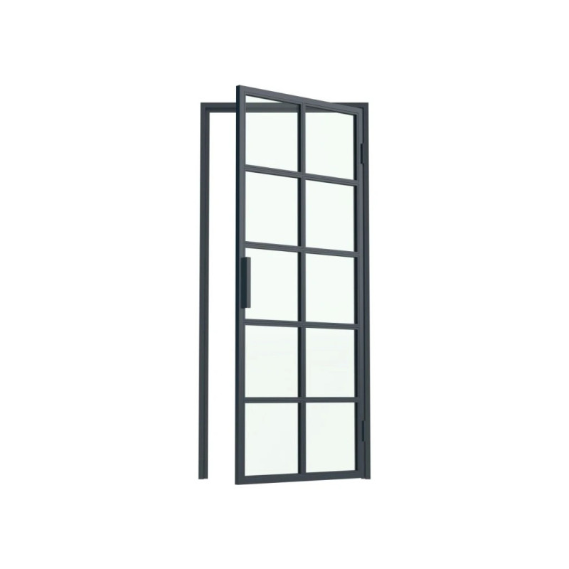 Poctivá konstrukce: Rám i vnitřní dělení tvoří subtilní, ale pevné ocelové profily. Z obou stran vypadají dveře identicky – nepoužíváme žádné nalepené imitace.